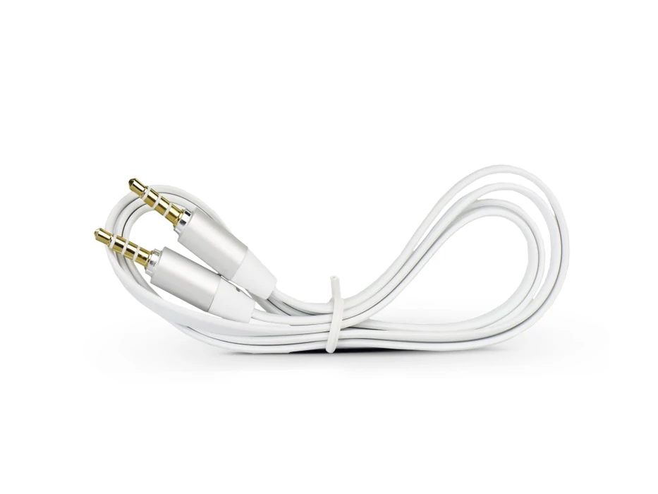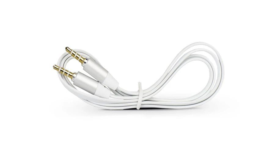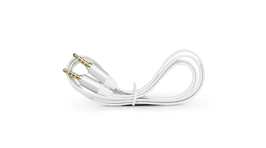| 3,5 - 3,5 mm jack audio kábel 1 m-es lapos vezetékkel, alumínium csatlakozó fejjel - fehér/ezüst | |