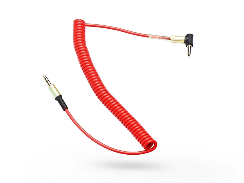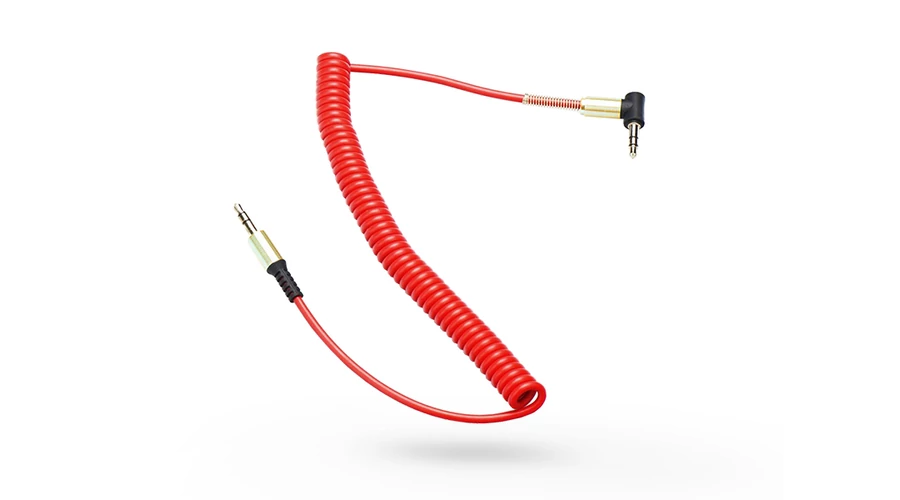 | 3,5 - 3,5 mm jack audio kábel spirál vezetékkel - piros/arany | |