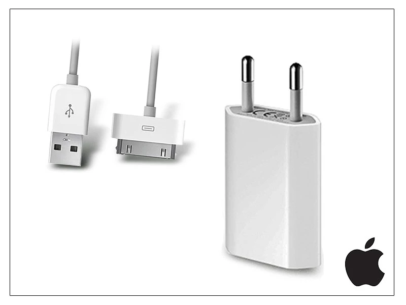 Apple iPhone 3G/3GS/4/4S USB hálózati töltő adapter + adatkábel - MD813ZM/A+MA591G/A - 5V/1A - 5W (csomagolás nélküli)