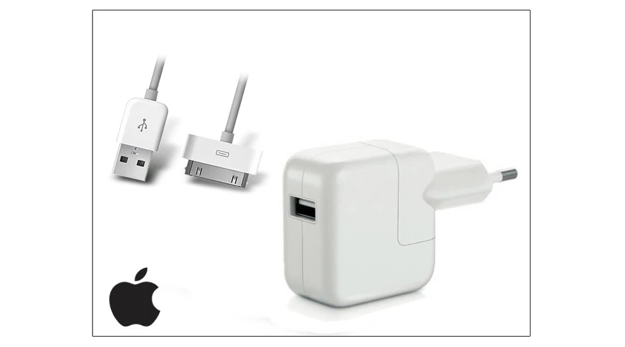 Apple iPhone 3G/3GS/4/4S/iPad/iPad2 USB hálózati töltő adapter + adatkábel - 5V/2,1A - MB051ZM/A+MA591G/A (csomagolás nélküli)