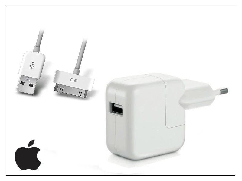 Apple iPhone 3G/3GS/4/4S/iPad/iPad2 USB hálózati töltő adapter + adatkábel - 5V/2,4A - MD836ZM/A+MA591G/A (csomagolás nélküli)