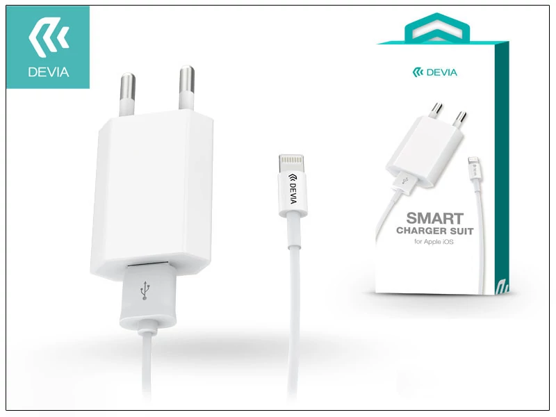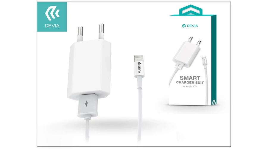 | Apple iPhone 5/5S/5C/SE/6S/6S Plus USB hálózati töltő adapter + lightning adatkábel - 5V/1A - Devia Smart Charger Suit - white | |