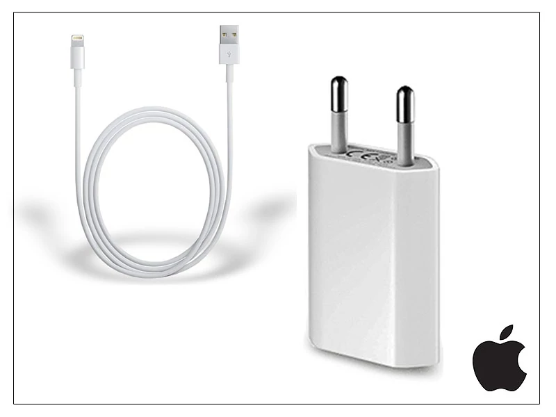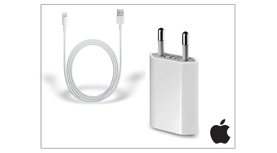 Apple iPhone 5/5S/5C/SE/6S/6S Plus USB hálózati töltő adapter + lightning adatkábel - MB707ZM/A + MD818ZM/A - 5V/1A (csomagolás nélküli)