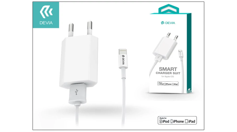 | Apple iPhone 5/5S/5C/SE/6S/6S Plus USB hálózati töltő adapter + lightning adatkábel (MFI engedélyes) - 5V/1A - Devia Smart Charger Suit - white | |