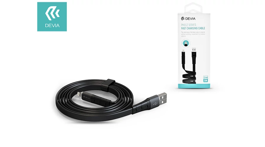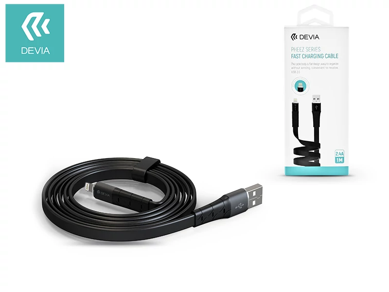 Apple iPhone 5/5S/5C/SE/iPad 4/iPad Mini USB töltő- és adatkábel 1 m-es lapos vezetékkel - Devia Pheez Flat Fast Charging Cable for Lightning 2.4A - black