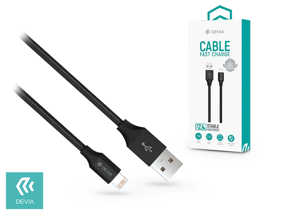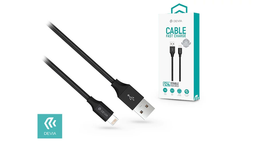 | Apple iPhone 5/5S/5C/SE/iPad 4/iPad Mini USB töltő- és adatkábel 1 m-es vezetékkel - Devia Gracious Lightning Cable - 5V/2.4A - black | |