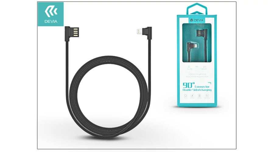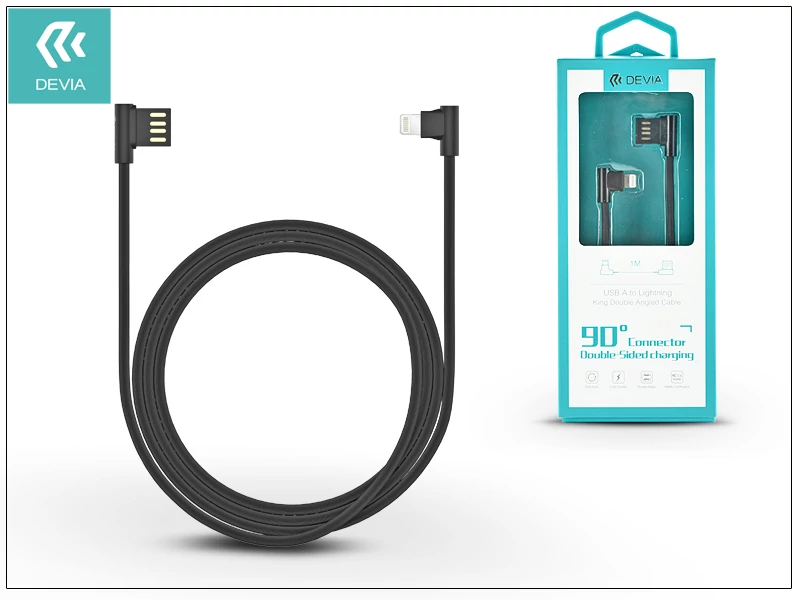 Apple iPhone 5/5S/5C/SE/iPad 4/iPad Mini USB töltő- és adatkábel 1 m-es vezetékkel - Devia King 90 Double Angled for Lightning USB 2.4 - black