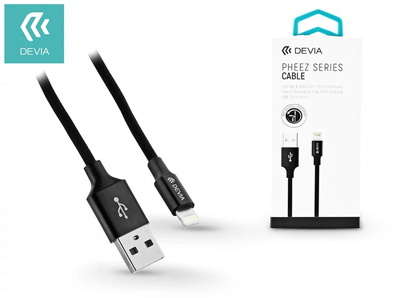Apple iPhone 5/5S/5C/SE/iPad 4/iPad Mini USB töltő- és adatkábel - 1 m-es vezetékkel - Devia Pheez Lightning USB 2.4A - black
