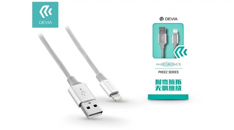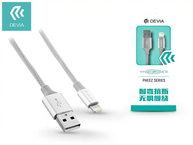 | Apple iPhone 5/5S/5C/SE/iPad 4/iPad Mini USB töltő- és adatkábel - 1 m-es vezetékkel - Devia Pheez Lightning USB 2.4A - silver | |