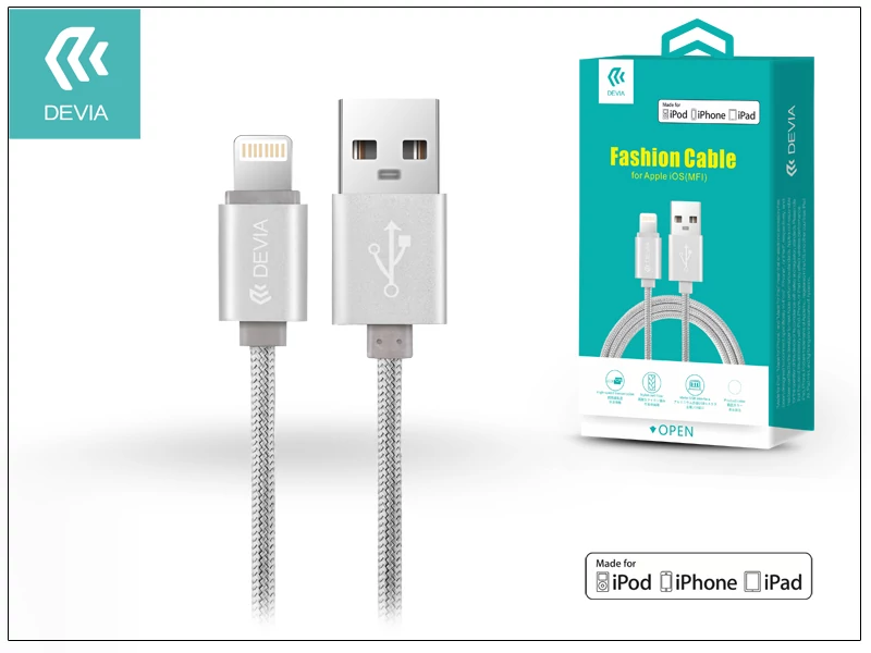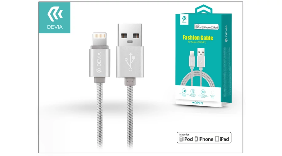 Apple iPhone 5/5S/5C/SE/iPad 4/iPad Mini USB töltő- és adatkábel - 1,2 m-es vezetékkel (Apple MFI engedélyes) - Devia Fashion Cable Lightning - silver