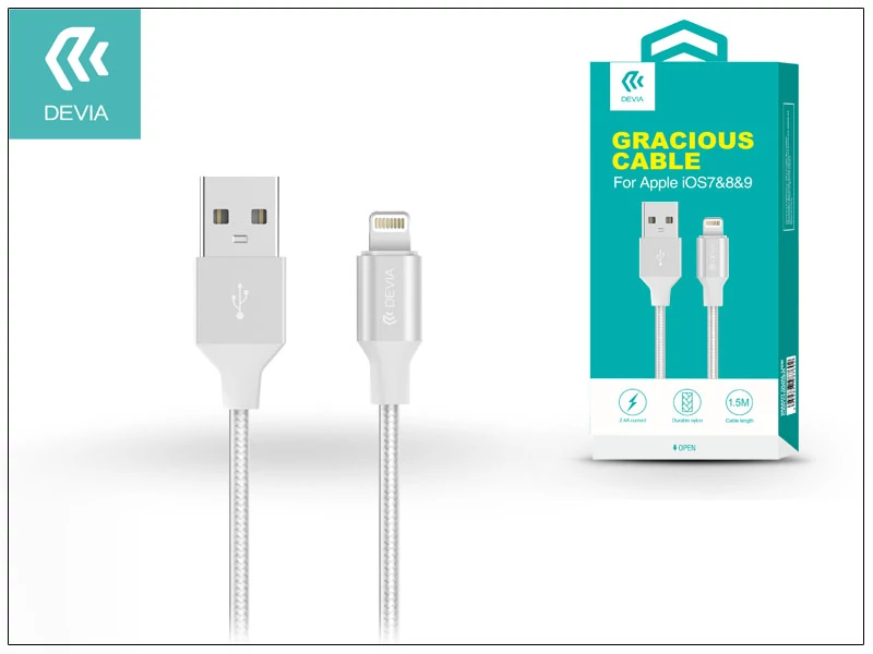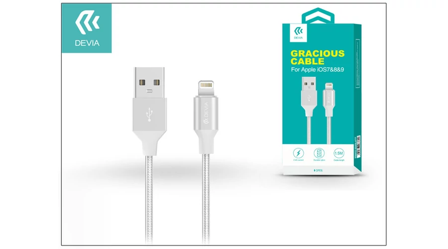 | Apple iPhone 5/5S/5C/SE/iPad 4/iPad Mini USB töltő- és adatkábel - 1,5 m-es vezetékkel - Devia Gracious Lightning USB 2.4 - white | |