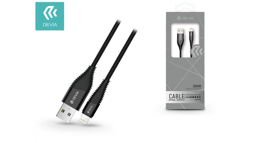 | Apple iPhone 5/5S/5C/SE/iPad 4/iPad Mini USB töltő- és adatkábel - 1,5 m-es vezetékkel - Devia Tornado Lightning - black | |