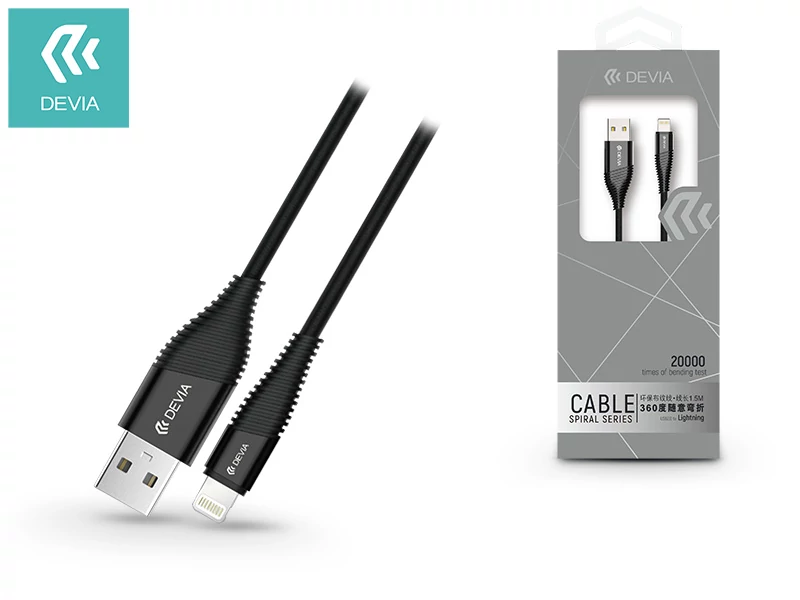 Apple iPhone 5/5S/5C/SE/iPad 4/iPad Mini USB töltő- és adatkábel - 1,5 m-es vezetékkel - Devia Tornado Lightning - black