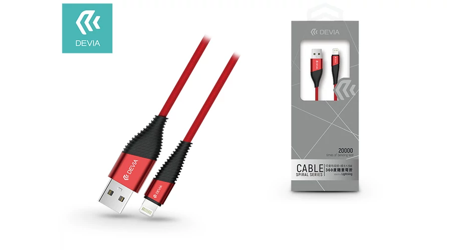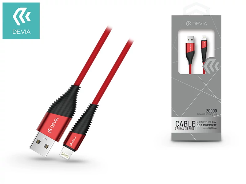 | Apple iPhone 5/5S/5C/SE/iPad 4/iPad Mini USB töltő- és adatkábel - 1,5 m-es vezetékkel - Devia Tornado Lightning - red | |