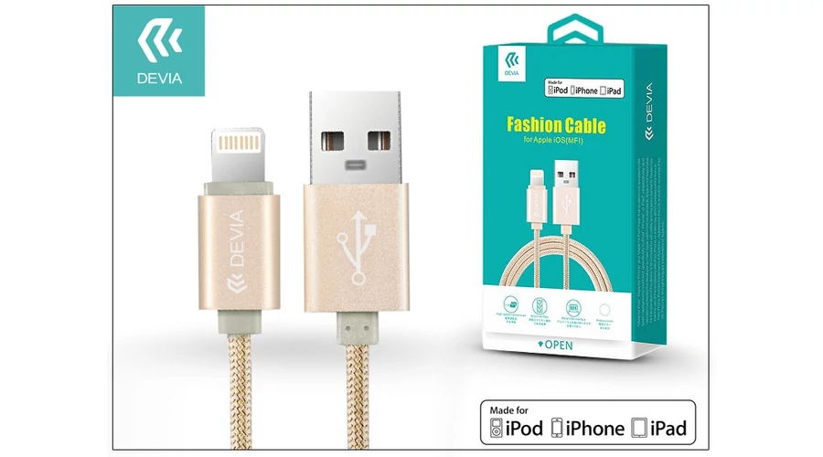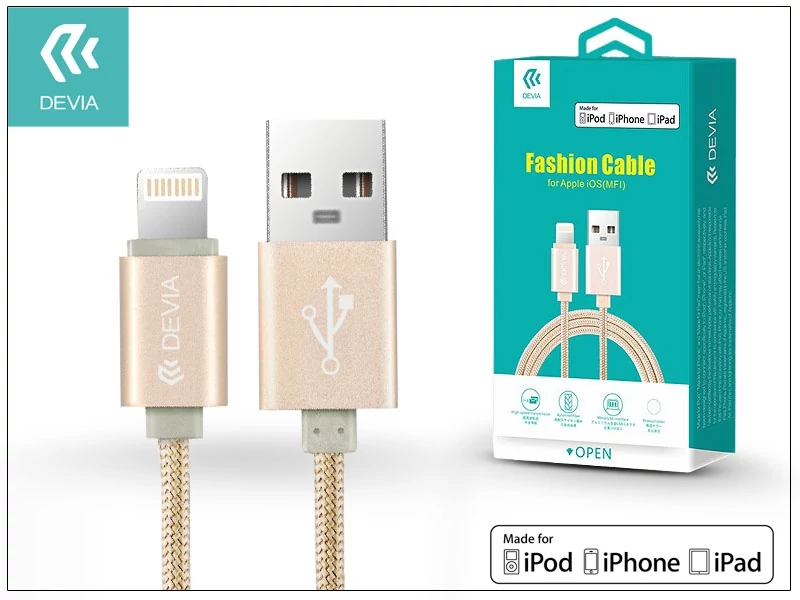 | Apple iPhone 5/5S/5C/SE/iPad 4/iPad Mini USB töltő- és adatkábel - 2 m-es vezetékkel (Apple MFI engedélyes) - Devia Fashion Cable Lightning - gold | |