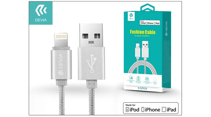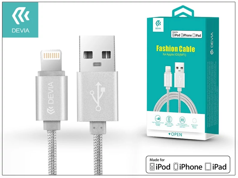 Apple iPhone 5/5S/5C/SE/iPad 4/iPad Mini USB töltő- és adatkábel - 2 m-es vezetékkel (Apple MFI engedélyes) - Devia Fashion Cable Lightning - silver