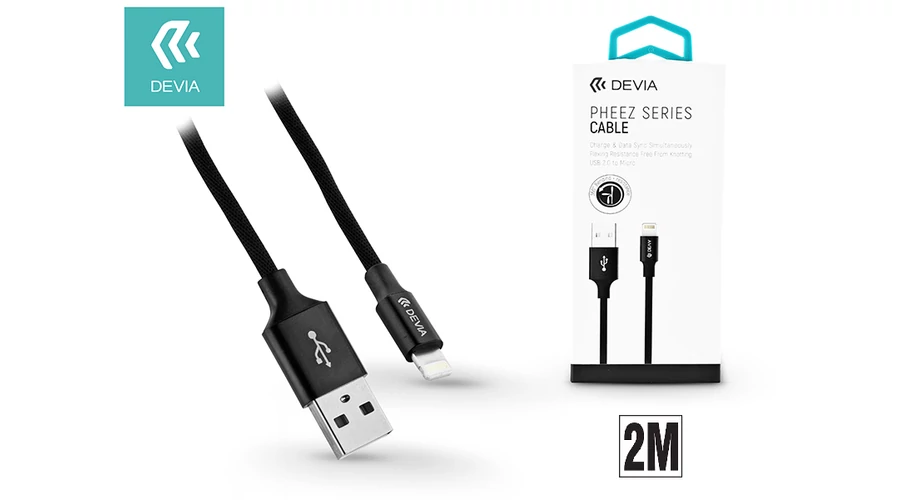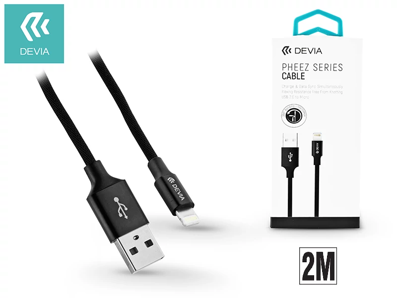 Apple iPhone 5/5S/5C/SE/iPad 4/iPad Mini USB töltő- és adatkábel - 2 m-es vezetékkel - Devia Pheez Lightning USB 2.1A - black