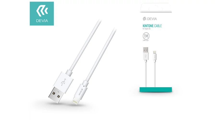 | Apple iPhone 5/5S/5C/SE/iPad 4/iPad Mini USB töltőkábel - 1 m-es vezetékkel - Devia Kintone Lightning USB 1A - white | |