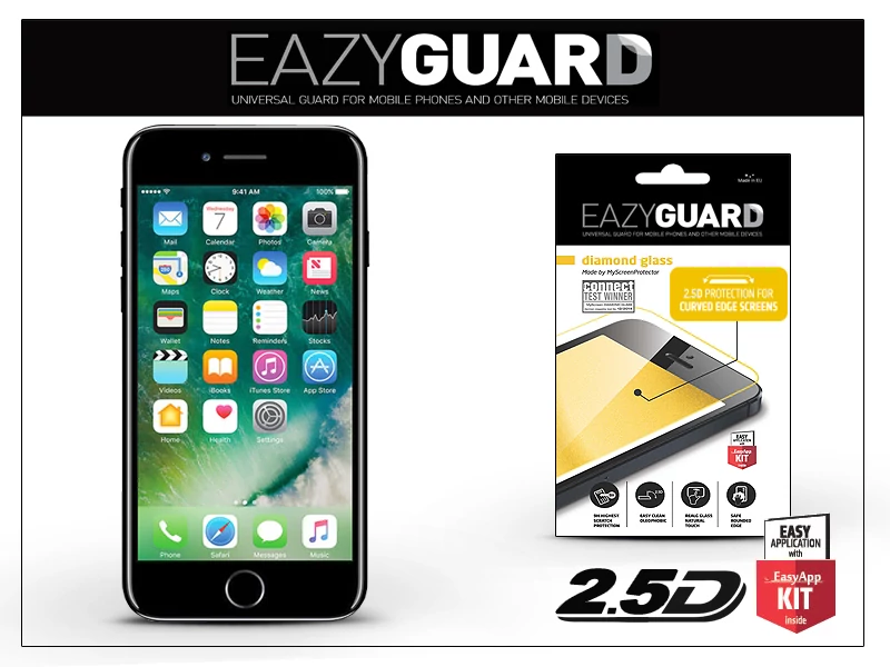 Egyszerűen és precízen felhelyezhető a csomagolásban található EasyApp KIT segítségével.
