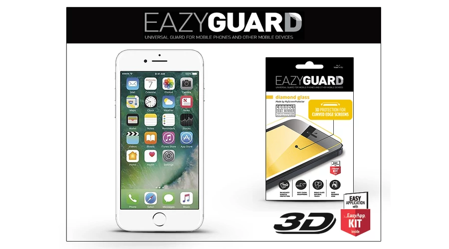 Egyszerűen és precízen felhelyezhető a csomagolásban található EasyApp KIT segítségével.