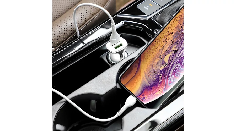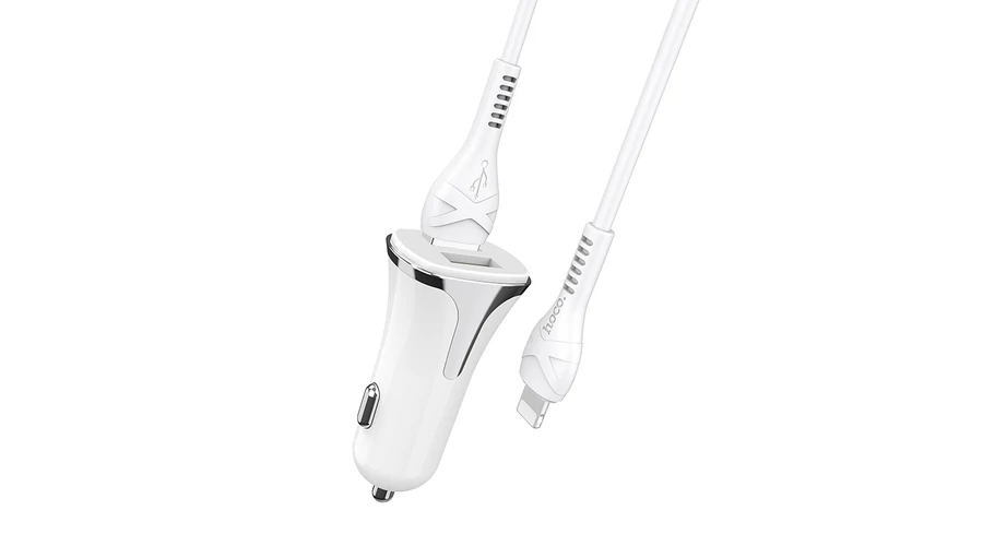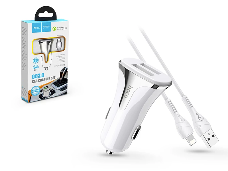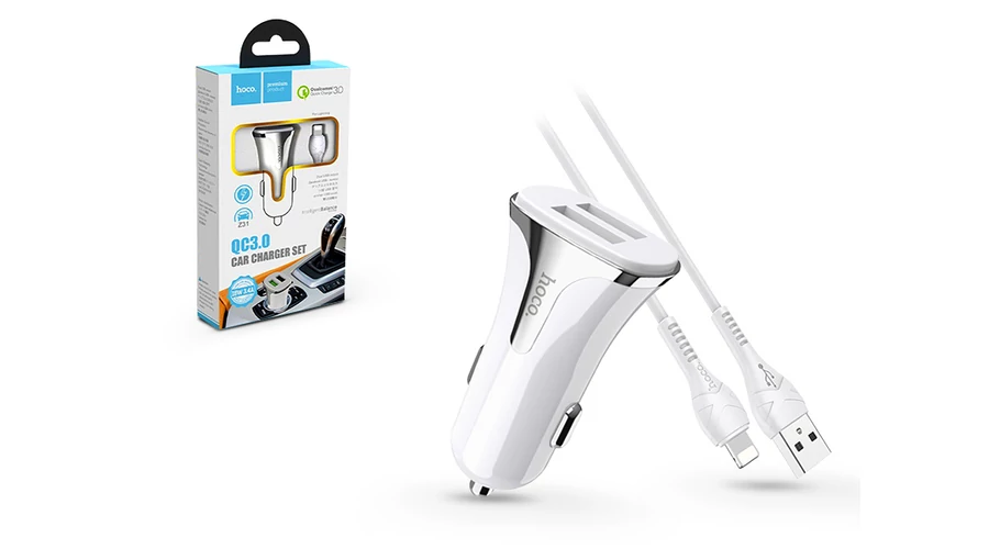 Apple iPhone Lightning szivargyújtós töltő adapter + lightning adatkábel - 5V/3,4A - HOCO Z31 QC3.0 - fehér