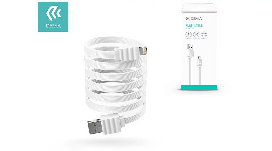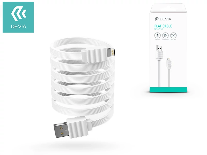 Apple iPhone Lightning USB töltő- és adatkábel 1 m-es lapos vezetékkel - Devia Flat Cable Lightning USB 2.0 - white