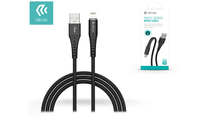 Apple iPhone Lightning USB töltő- és adatkábel 1 m-es vezetékkel - Devia Pheez Series Braid Cable Lightning USB 2.1 - black