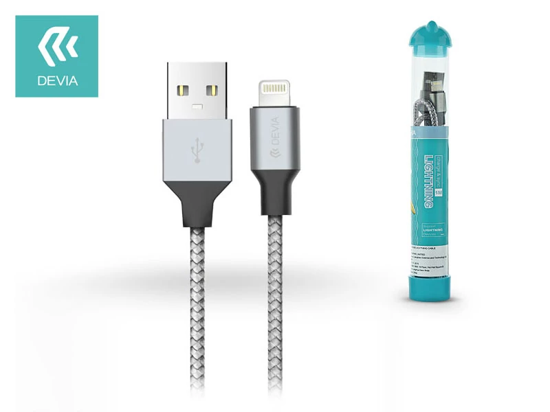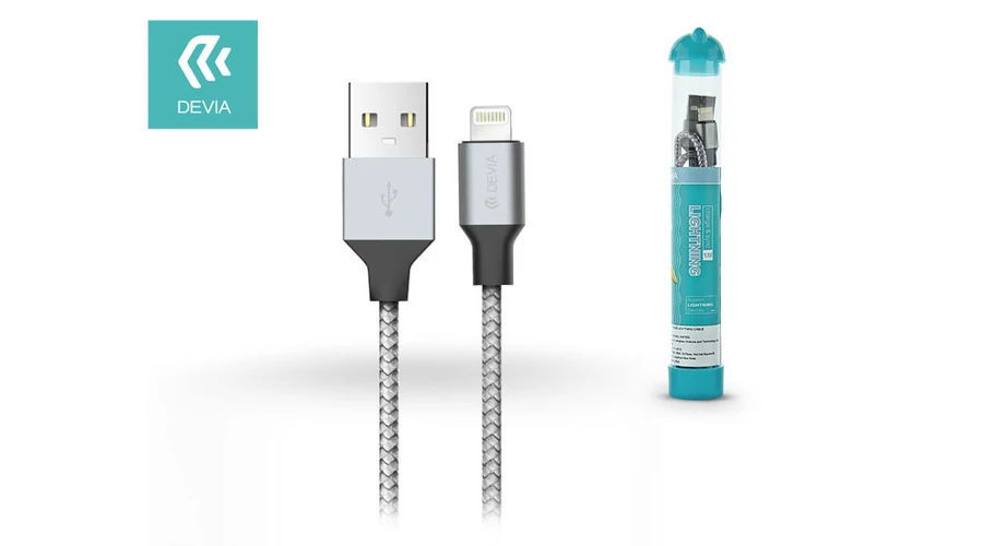 | Apple iPhone Lightning USB töltő- és adatkábel - 1 m-es vezetékkel - Devia Tube Lightning USB 2.4A - silver/black | |