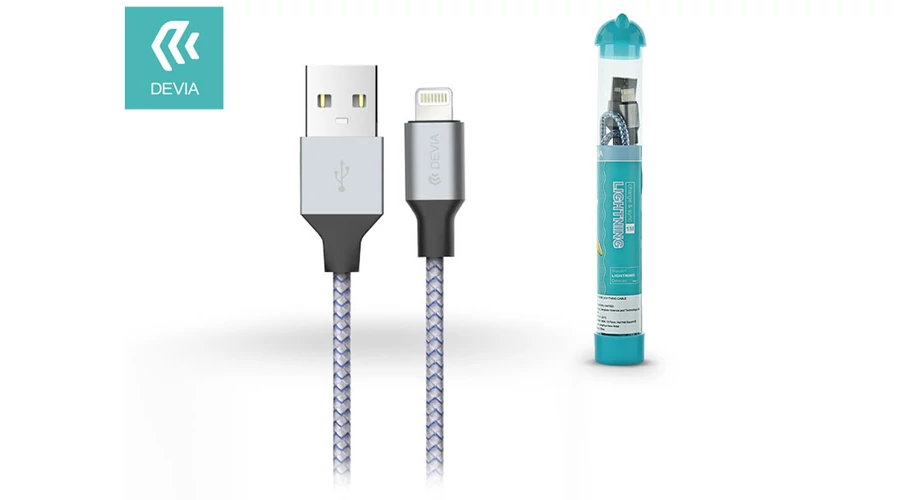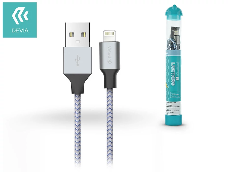 | Apple iPhone Lightning USB töltő- és adatkábel - 1 m-es vezetékkel - Devia Tube Lightning USB 2.4A - silver/blue | |