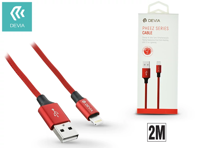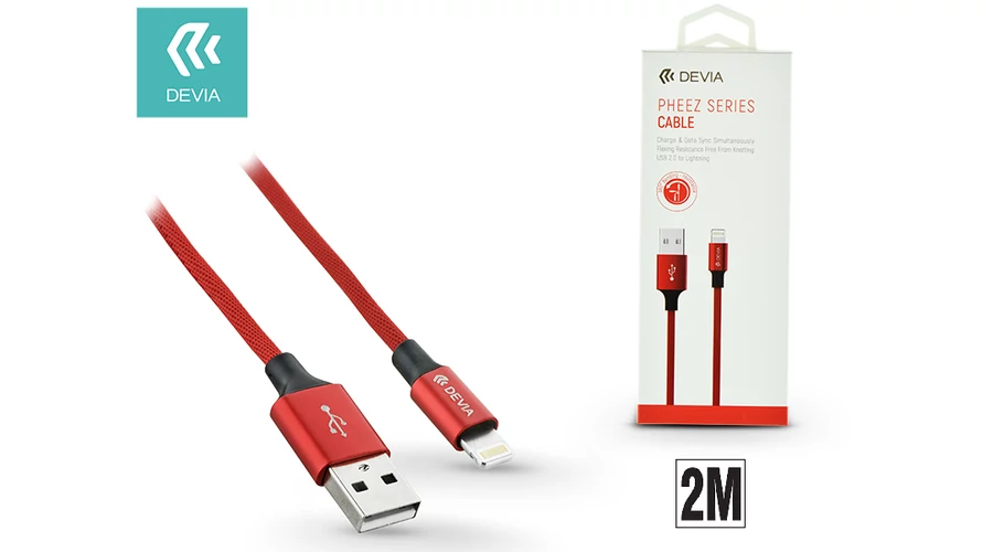 Apple iPhone Lightning USB töltő- és adatkábel - 2 m-es vezetékkel - Devia Pheez Lightning USB 2.1A - red