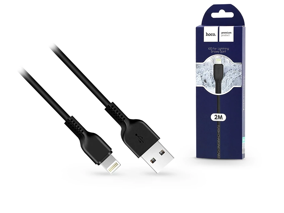 Apple iPhone Lightning USB töltő- és adatkábel 2 m-es vezetékkel - HOCO X20 Lightning Cable - 2A - fekete