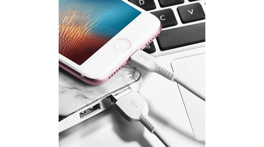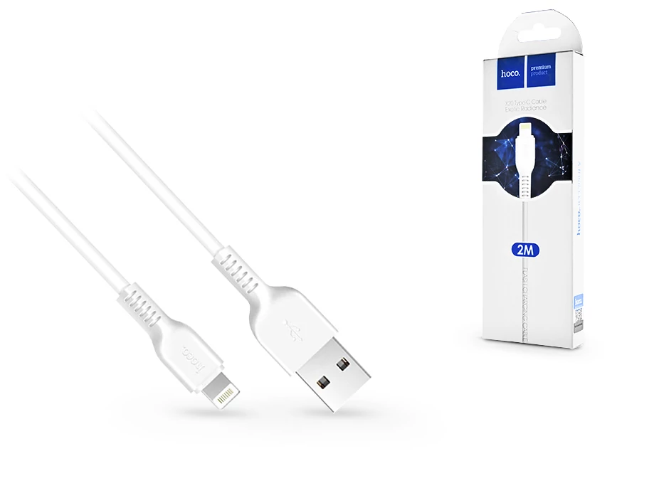 Apple iPhone Lightning USB töltő- és adatkábel 2 m-es vezetékkel - HOCO X20 Lightning Cable - 2A - fehér