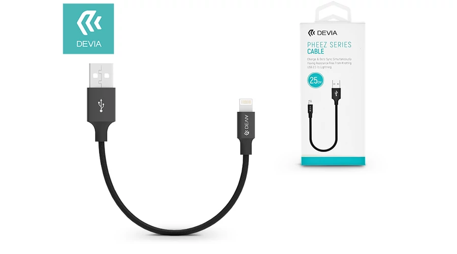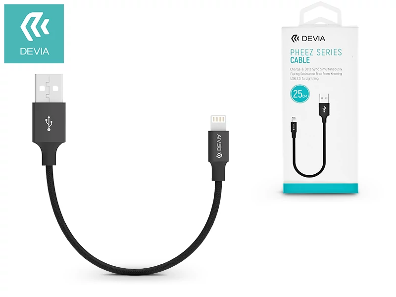 Apple iPhone Lightning USB töltő- és adatkábel 25 cm-es vezetékkel - Devia Pheez Lightning USB 2.1A - black