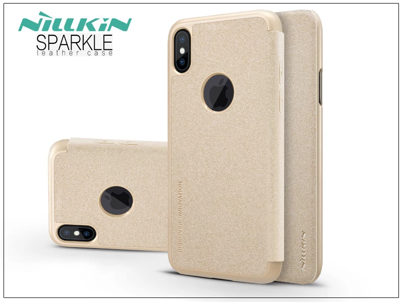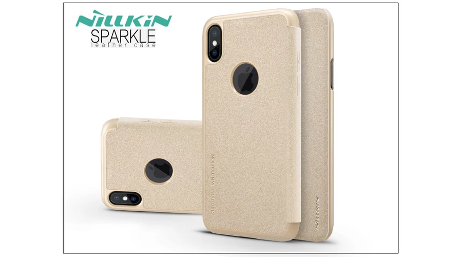 | Apple iPhone X oldalra nyíló flipes tok - Nillkin Sparkle Logo - gold | |