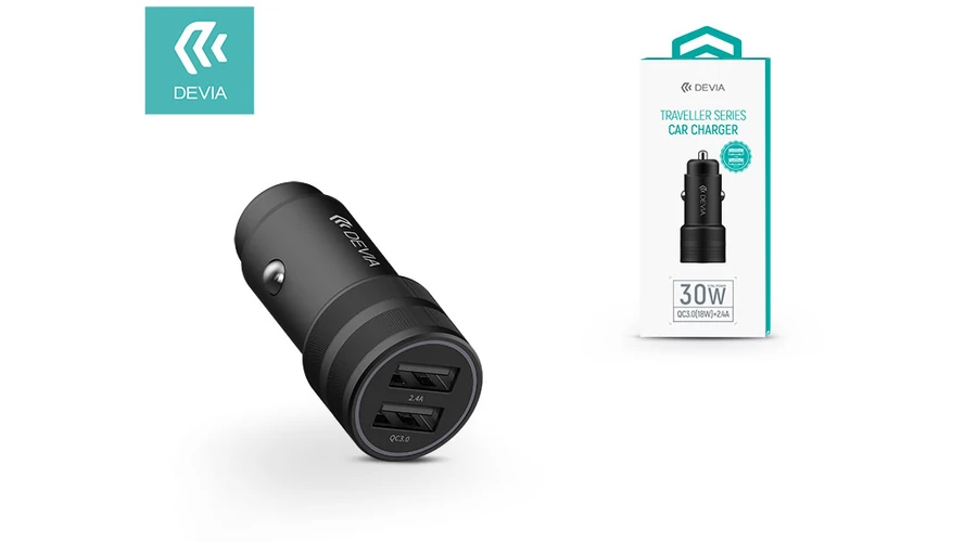 | Devia Dual USB szivargyújtós töltő adapter - 5V/2,4A/9V/2A/12V/1,5A - Devia Traveller Series Car Charger - Qualcomm Quick Charge 3.0 - black | |
