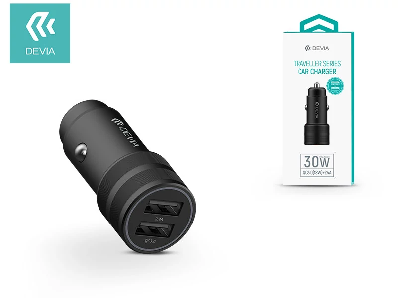 Devia Dual USB szivargyújtós töltő adapter - 5V/2,4A/9V/2A/12V/1,5A - Devia Traveller Series Car Charger - Qualcomm Quick Charge 3.0 - black