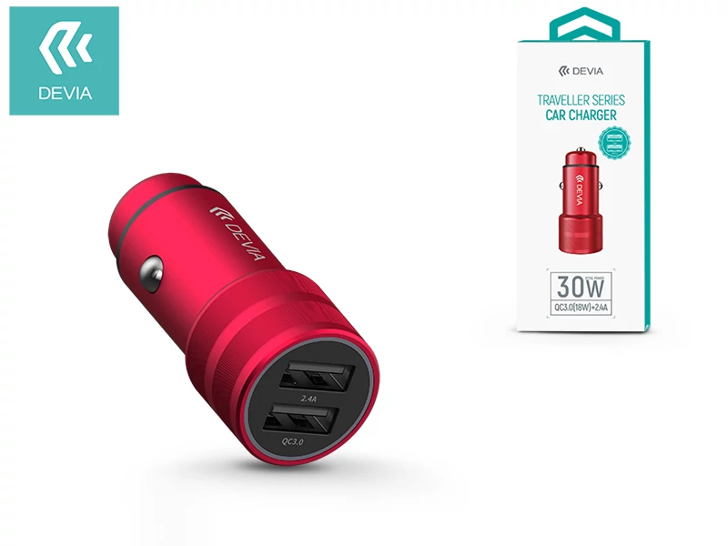 | Devia Dual USB szivargyújtós töltő adapter - 5V/2,4A/9V/2A/12V/1,5A - Devia Traveller Series Car Charger - Qualcomm Quick Charge 3.0 - red | |
