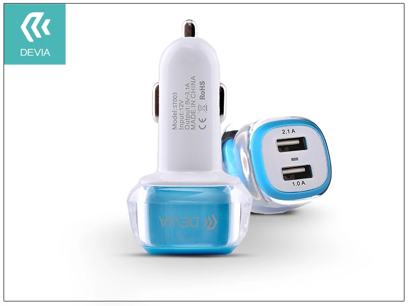 | Devia Dual USB szivargyújtós töltő adapter - 5V/3,1A - blue/white | |