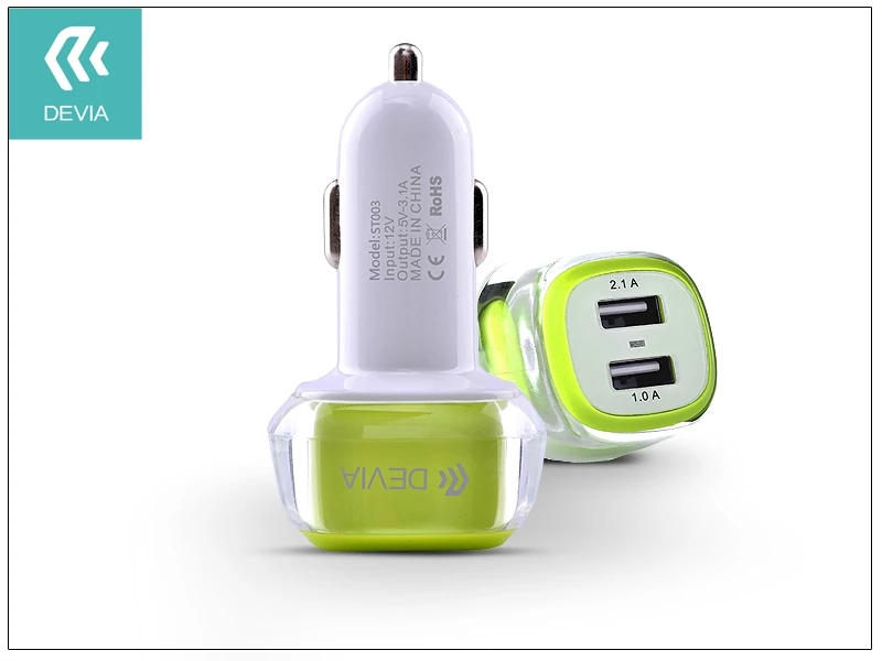 | Devia Dual USB szivargyújtós töltő adapter - 5V/3,1A - green/white | |