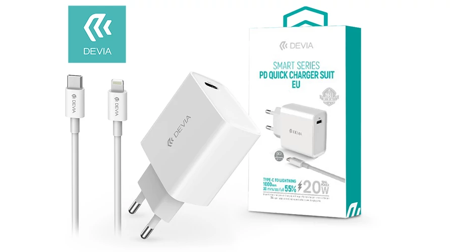 | Devia hálózati töltő adapter Type-C bemenettel + Type-C - Lightning adatkábel - 20W - Devia Smart Series PD3.0 Quick Charger Suit - white | |