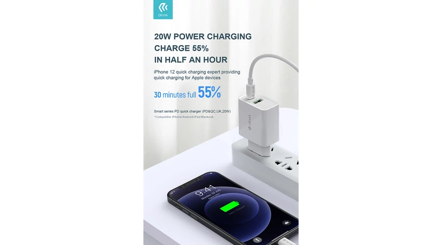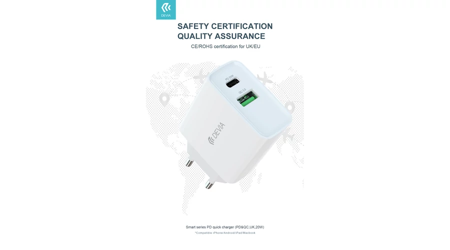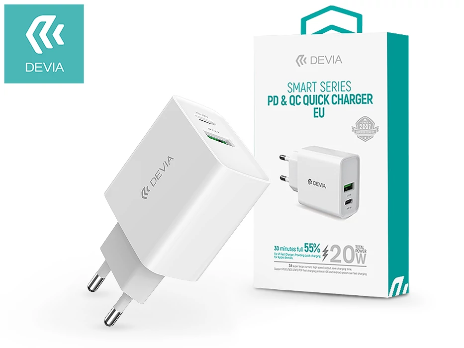 | Devia hálózati töltő adapter Type-C + USB bemenettel - 20W - Devia Smart Series PD3.0 + QC3.0 - Qualcomm Quick Charge 3.0 - white | |