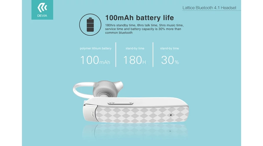 | Devia Lattice Bluetooth headset v4.1 - MultiPoint - Music Streaming - white | |