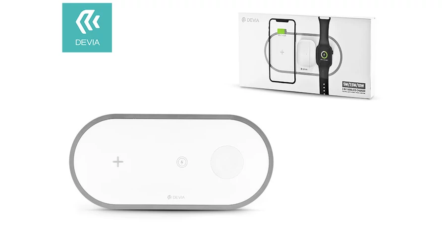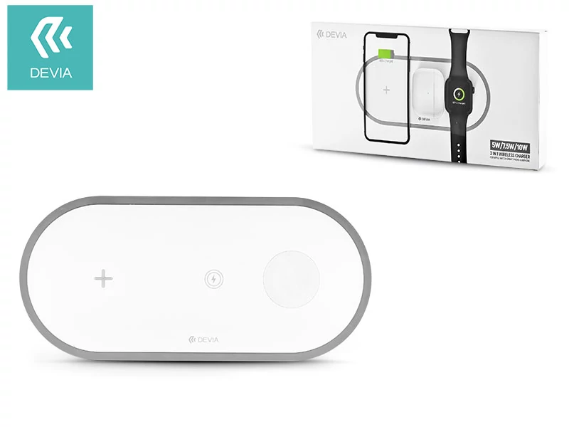 | Devia Qi univerzális vezeték nélküli töltő állomás - 10W - Devia V.4 3in1 Wireless Charger for Smartphone + Apple Watch + Earphone - white | |