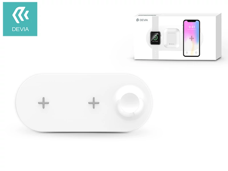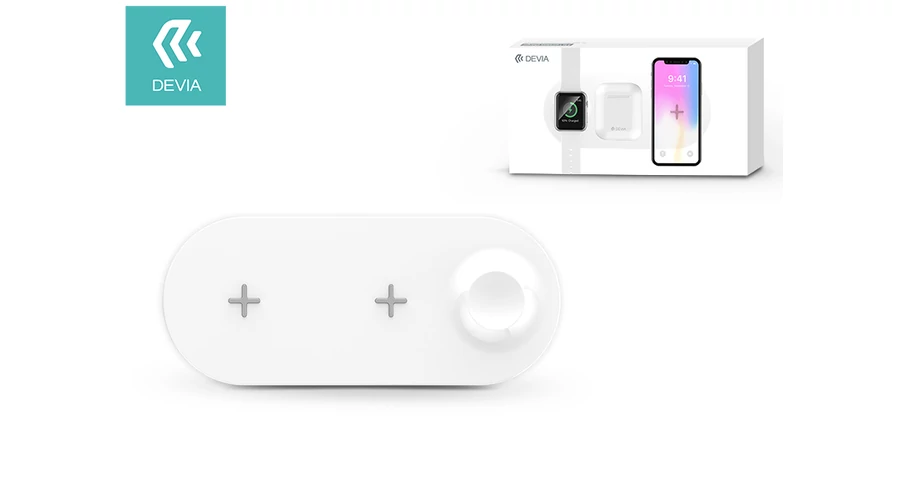 | Devia Qi univerzális vezeték nélküli töltő állomás - 18W - Devia V.2 3in1 Wireless Charger for Smartphone + Apple Watch + Earphone - white | |