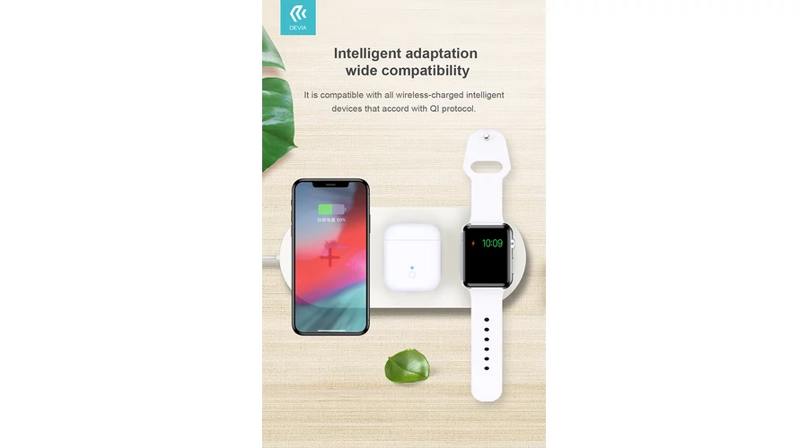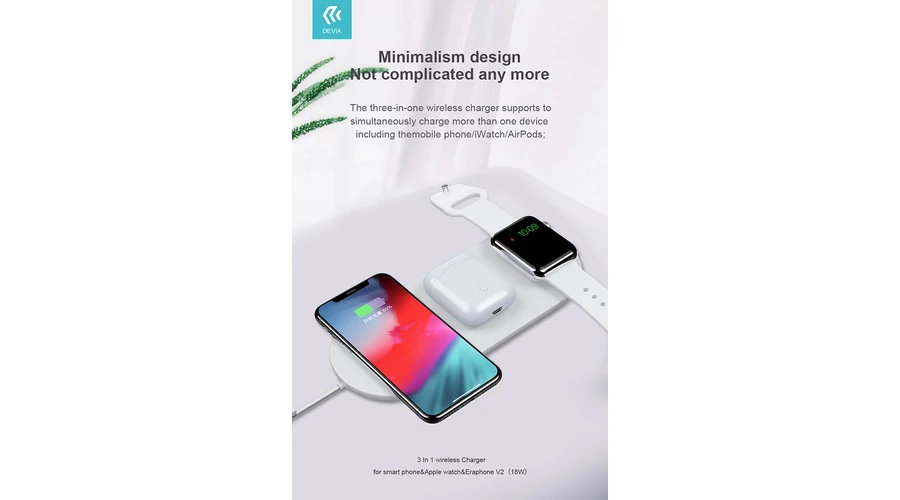 Telefon, Apple Watch és az AirPods töltése könnyebb, mint valaha a Devia vezeték nélküli töltőjével. Nem kell kábelt csatlakoztatnia az okostelefonjához - egyszerűen helyezze mobilkészülékét, Apple Watch óráját vagy AirPods fülhallgatóját a töltőpadra.