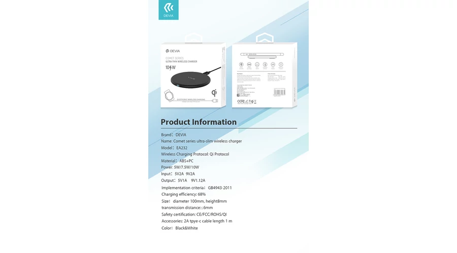 | Devia Qi univerzális vezeték nélküli töltő állomás - 5V/2A - Devia Comet Series Ultra Thin Wireless Charger - white - Qi szabványos | |