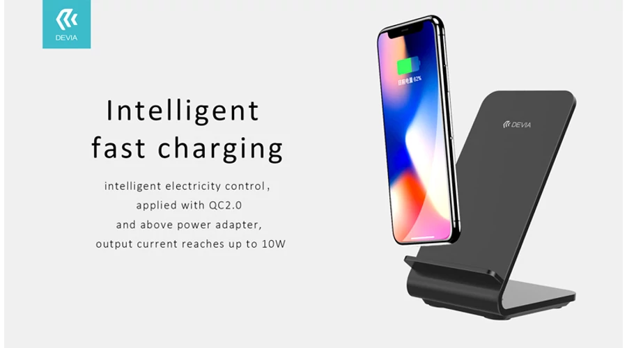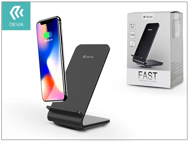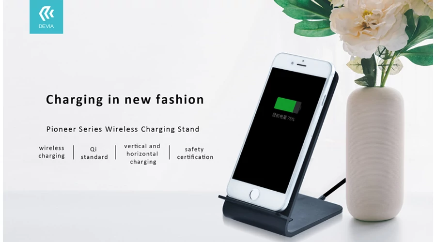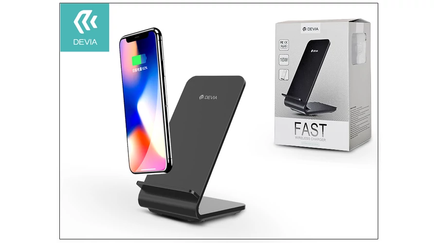 | Devia Qi univerzális vezeték nélküli töltő állomás - 5V/2A - Devia Pioneer Fast Wireless Charger Stand - black - Qi szabványos | |