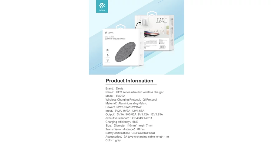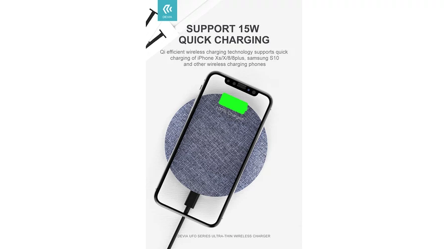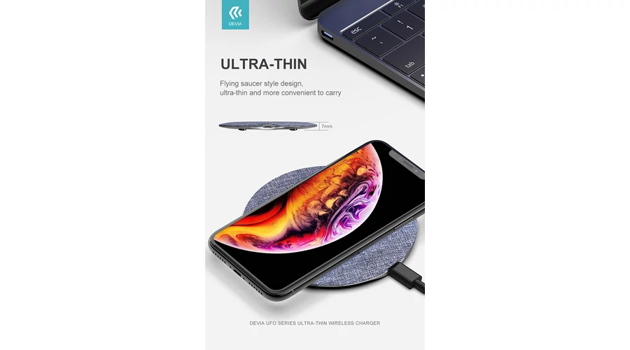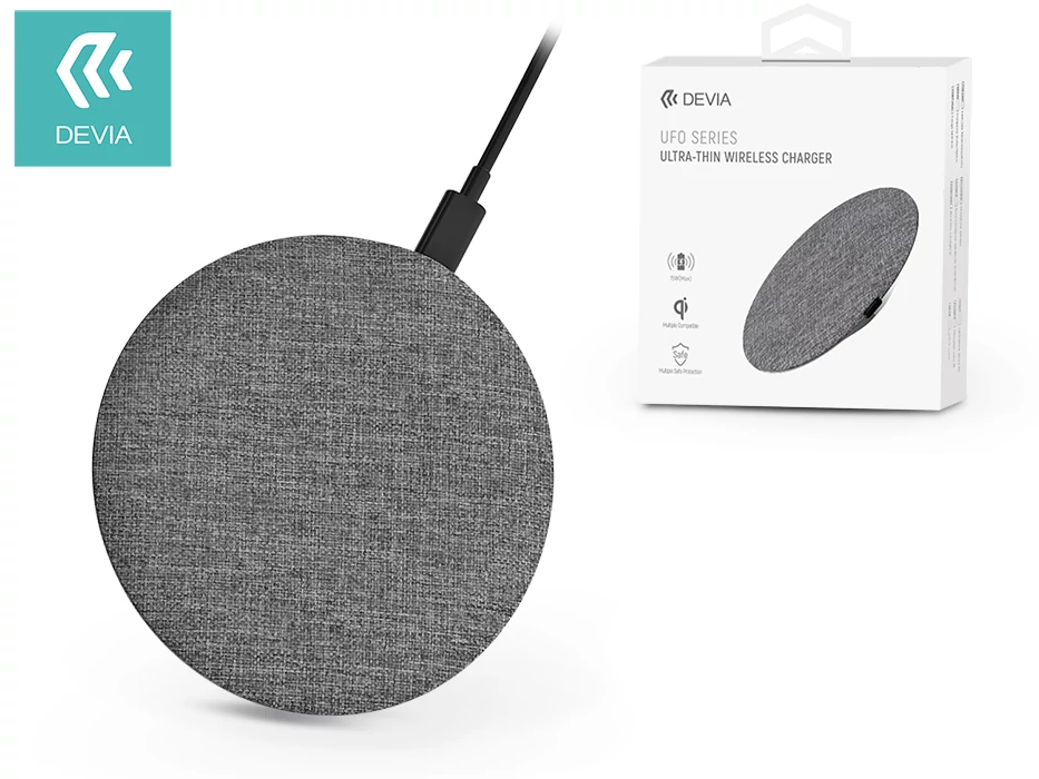 | Devia Qi univerzális vezeték nélküli töltő állomás - 15W - Devia UFO Series Ultra Thin Wireless Charger - grey - Qi szabványos | |