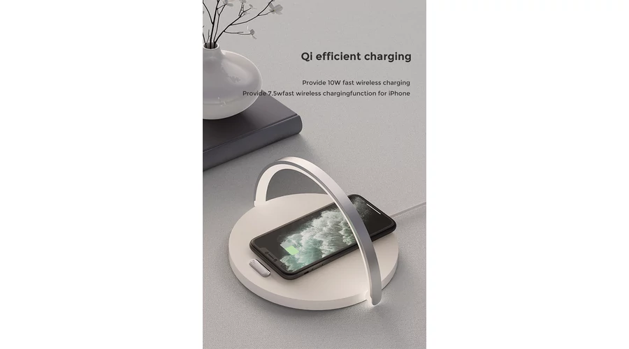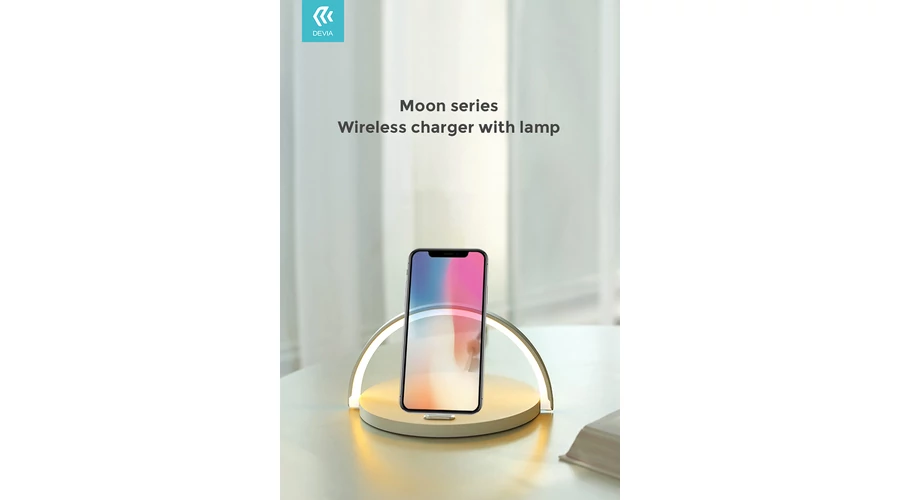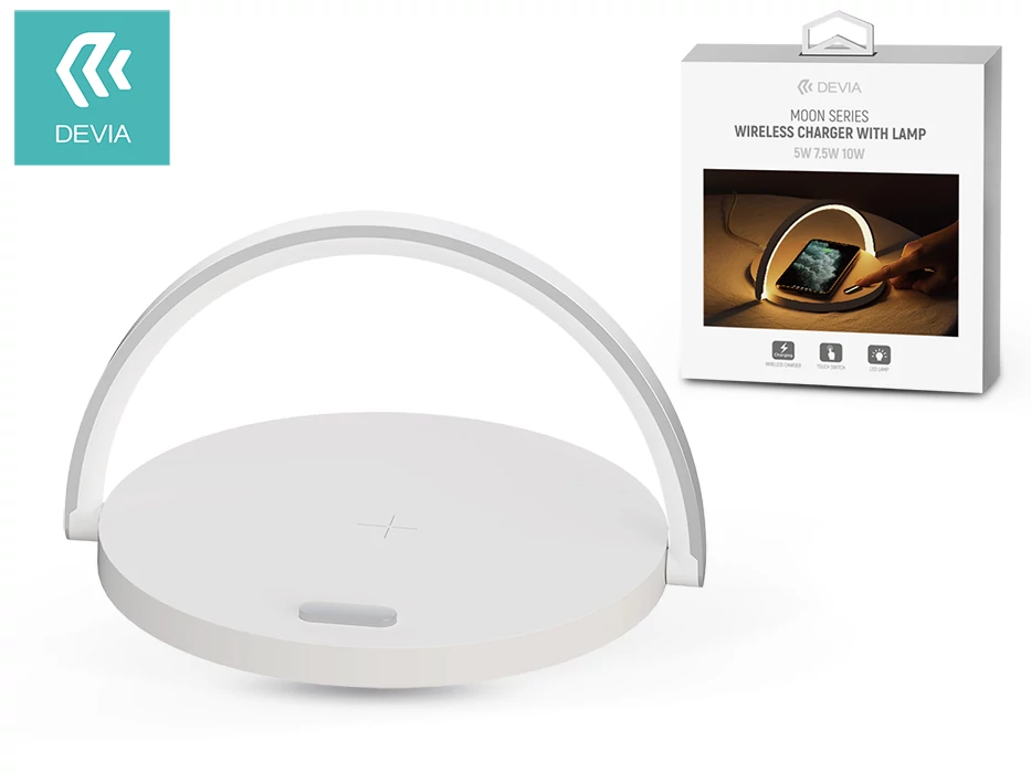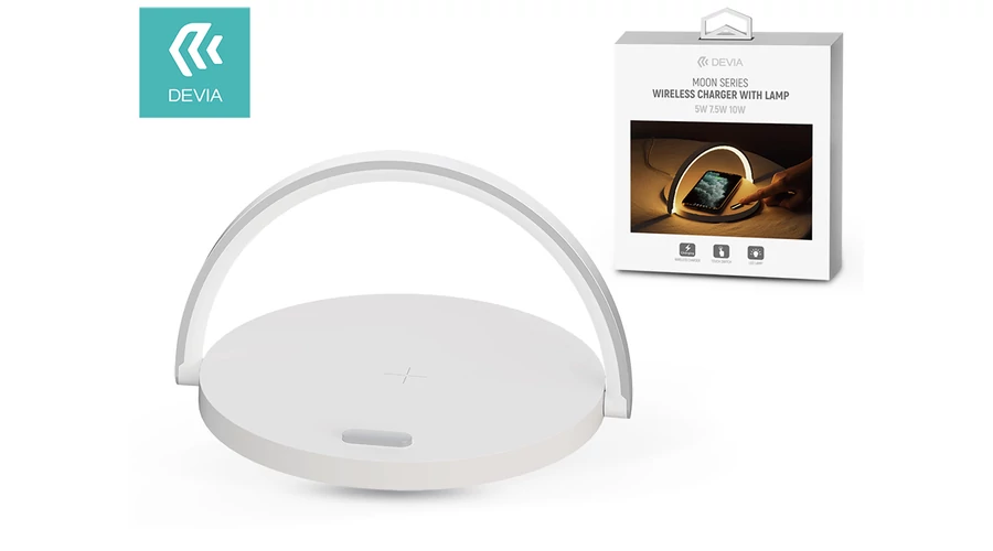 | Devia Qi univerzális vezeték nélküli töltő állomás/LED lámpa - 5V/1A - Devia Moon Series Wireless Charger With Lamp - Qi szabványos | |