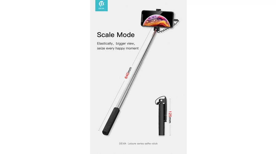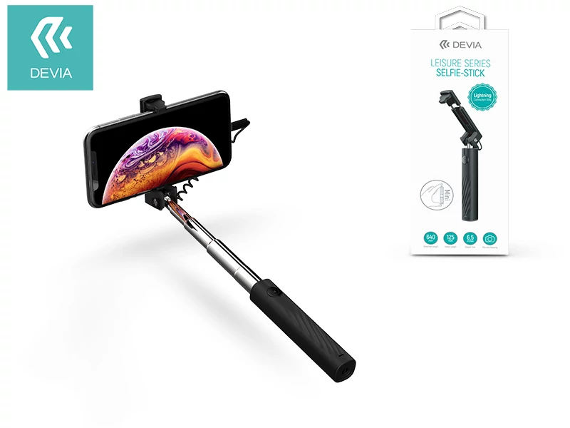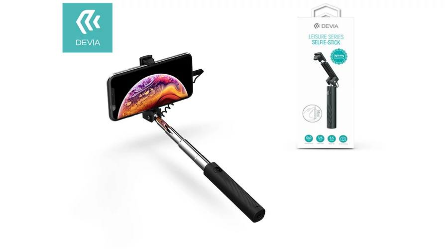 Devia Selfie Holder szelfi bot exponáló gombbal, Lightning csatlakozóval - Devia Leisure Series Selfie-Stick - black